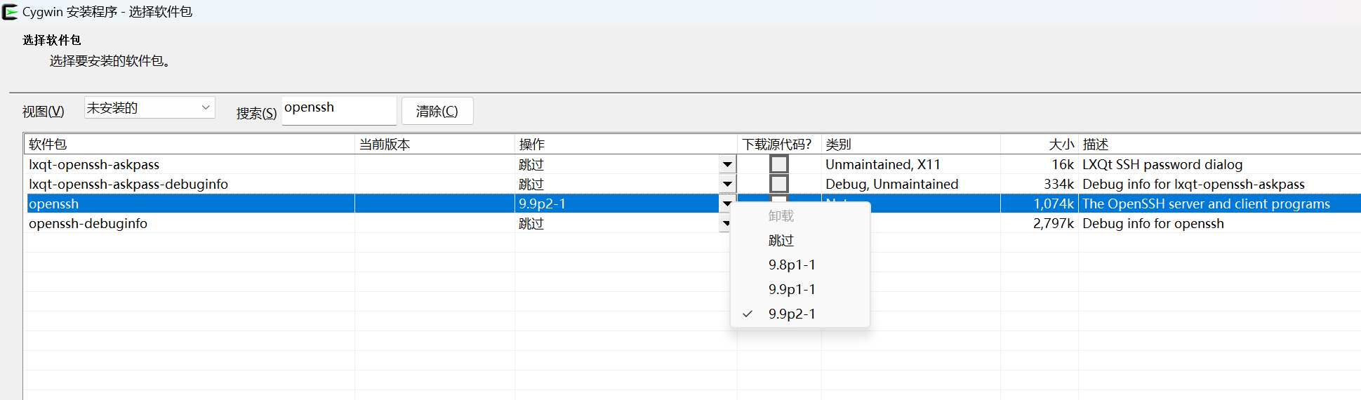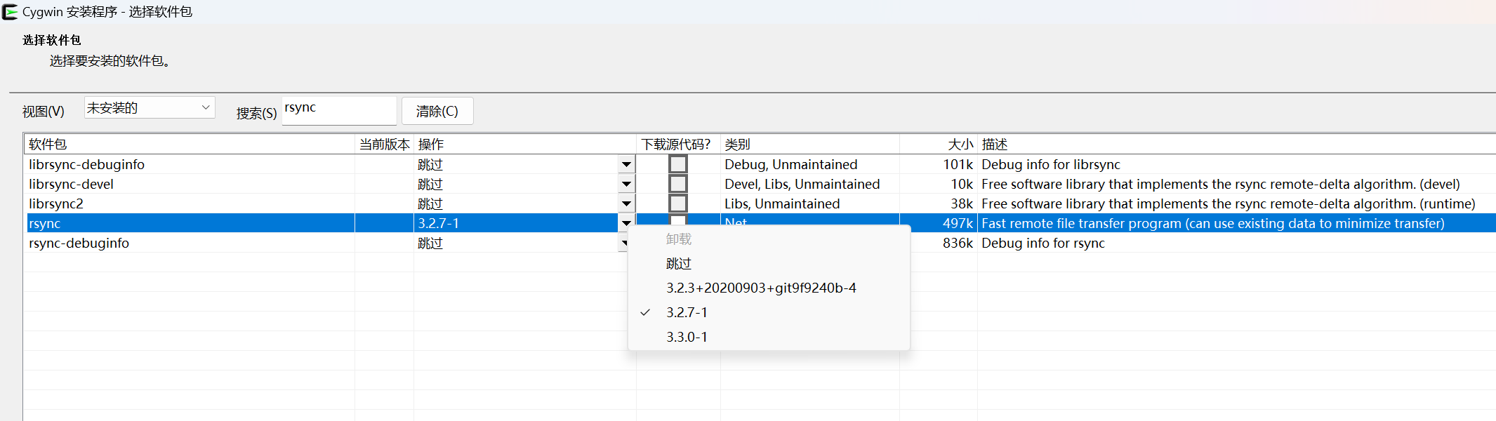 安装过程中搜索并挑选两个喜欢的 rsync 和 openssh 版本号