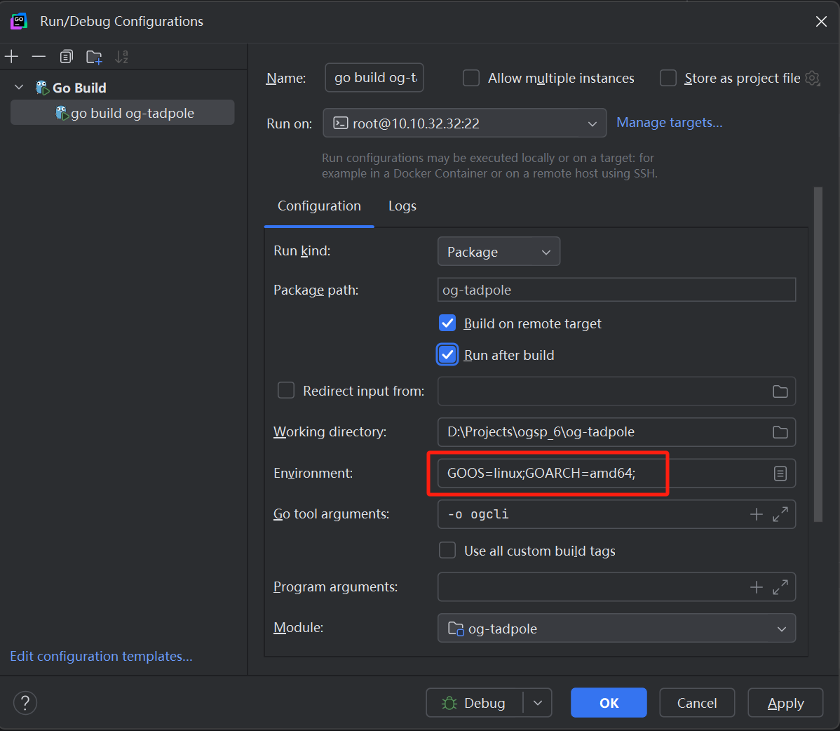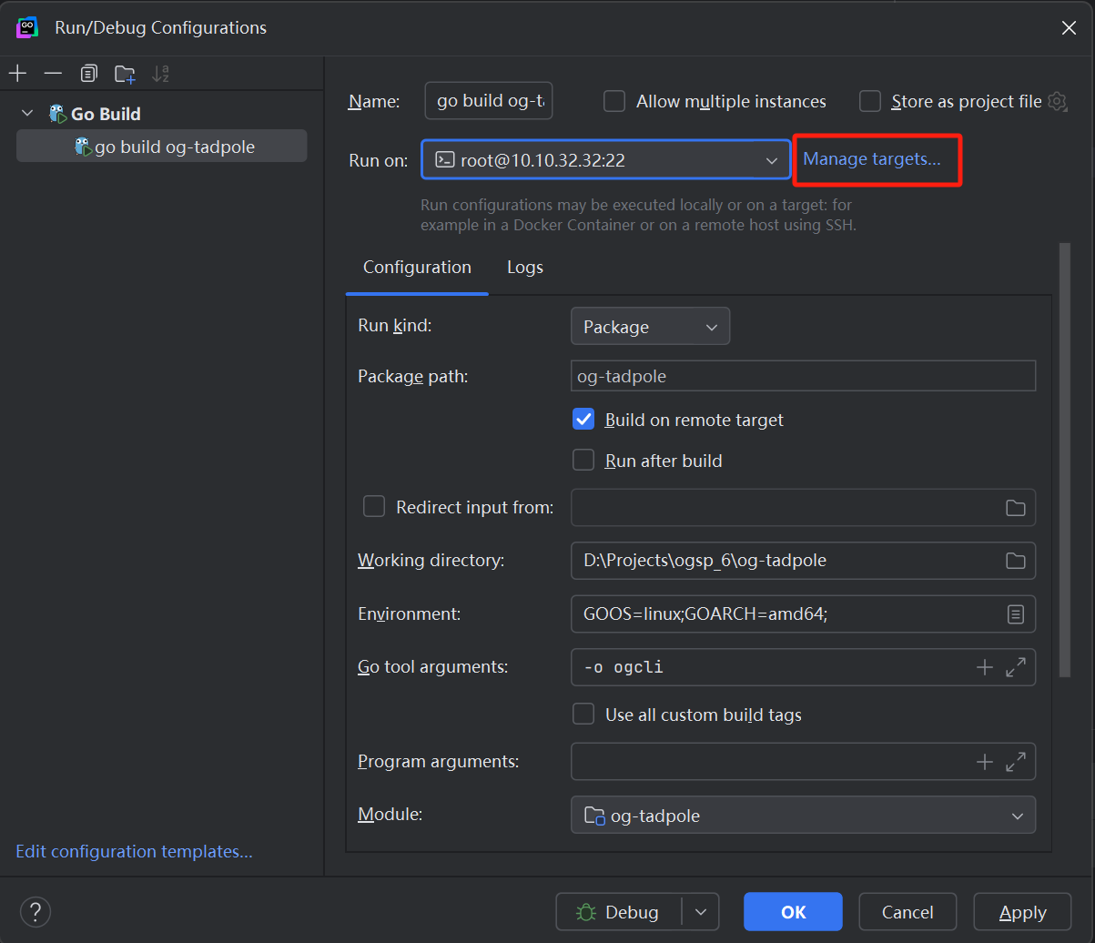 使用 goland go remote 绑定端口 debug